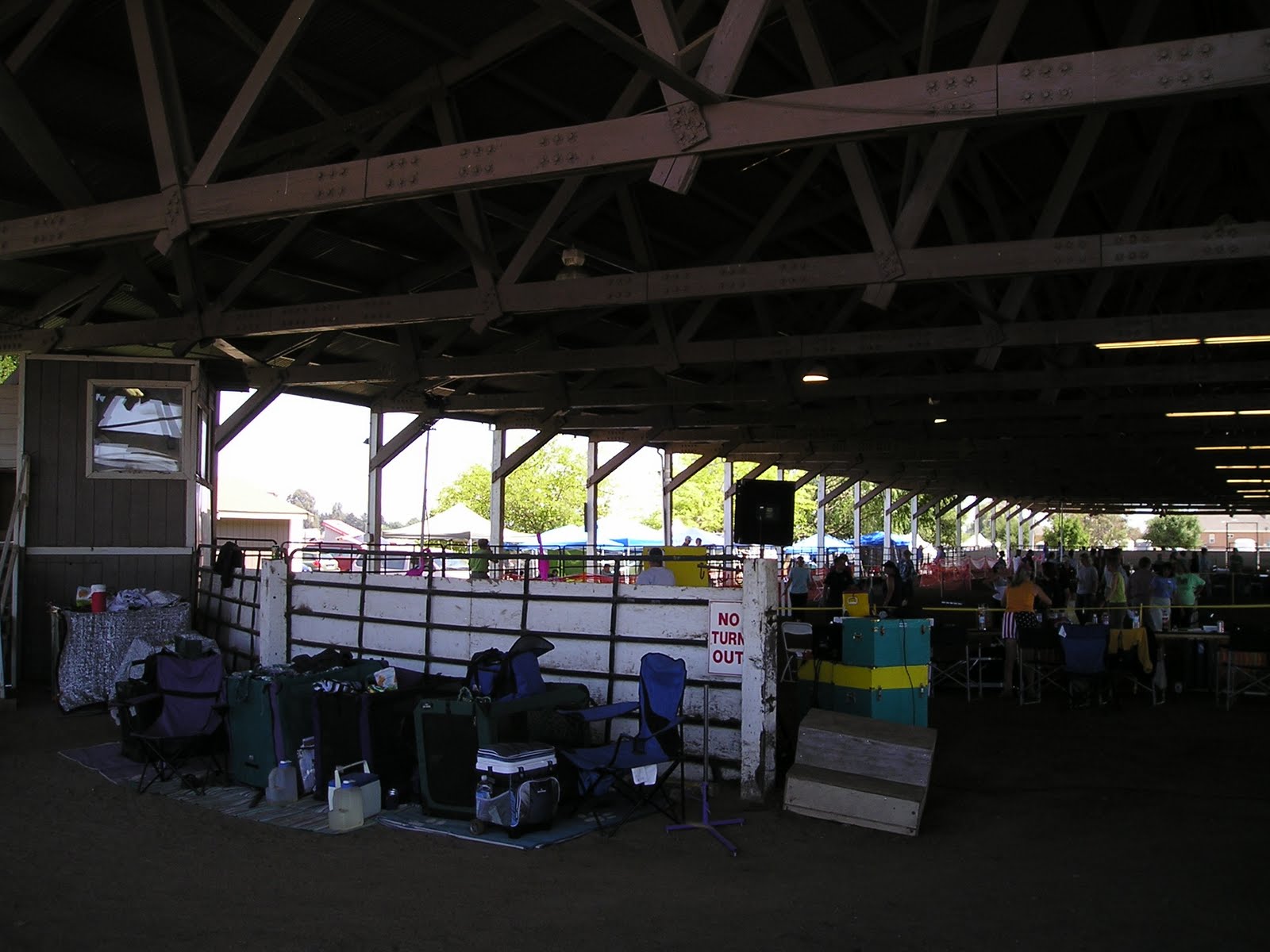 The arena looks pretty much the same as I remembered it--hard to say, though, as details are fuzzy. However, instead of muddy muddy MUDDY, everything is dusty dusty DUSTY! Just people and dogs walking by were enough to cover everything in my crating area with a blatant layer of dust.