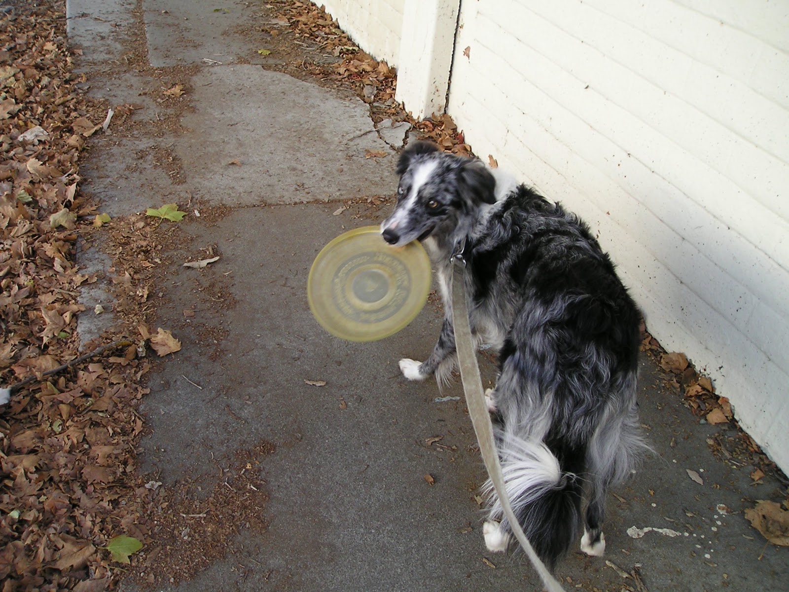 On leash: Mais bien sur! [grumbles about knowing how to do é and ü but nothing else] Actually when we get to the big grassy schoolyard field, the dogs go off leash. It's a pretty popular spot for offleash, and everyone picks up after themselves; I never find any other dog poop around.