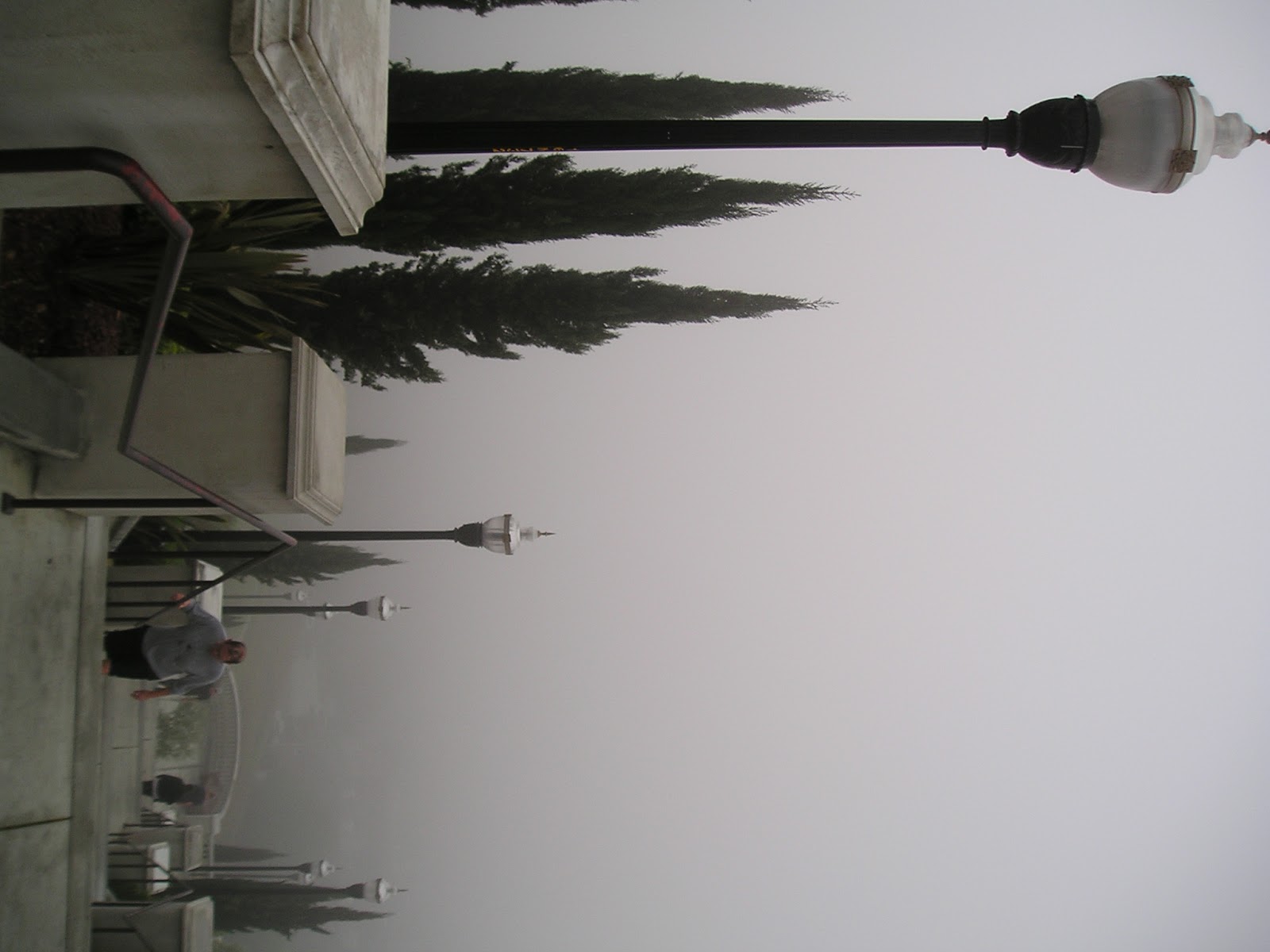 In heavy fog, I went to my first session Sunday morning. Good workout. We ran down and back up a flight of about 130 stairs. Fortunately there are landings every 20, and a level path between the two halves. (Here's the first 65.)