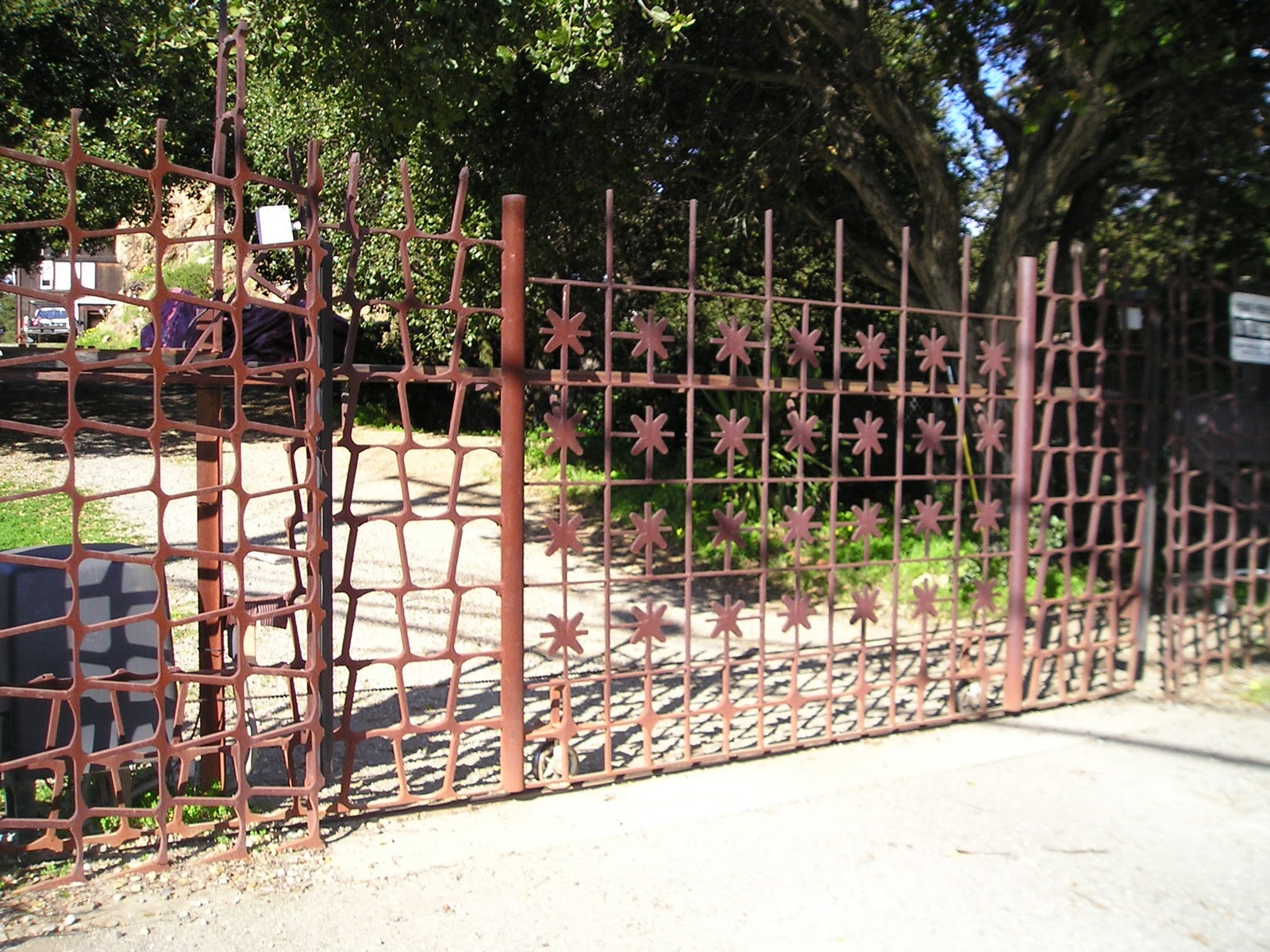 An interesting gate across one yard.