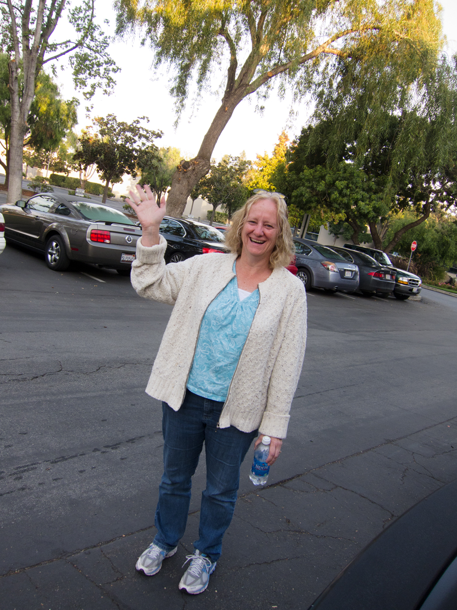 That was so I could toss the Merle Girls into MUTT MVR, drive up to Milpitas--about 20 minutes from here--and meet IN PERSON the famous Dawn of the "Dawn King" blog, all the way in from Michigan on vacation. For some odd reason she recognized MUTT MVR as we pulled into the hotel and greeted me hardly before I'd gotten out of the car. She was even nicer in person that she is in the blog, and that's pretty darned nice.