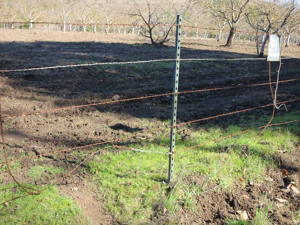 But--huh--wonder what goes under here so often as to have pushed the wire up and worn a path? Going from the orchard to the creek? Or vice-versa?