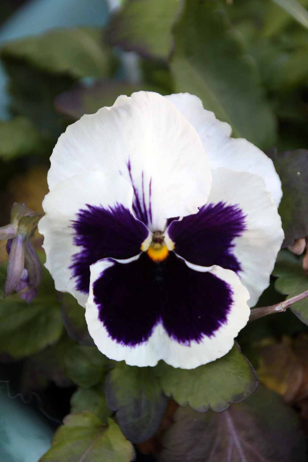 Another tiny flower whose name I don't recall, growing up among the fronds of the ornamental garlic, whose white-striped leaves are also year-round. |