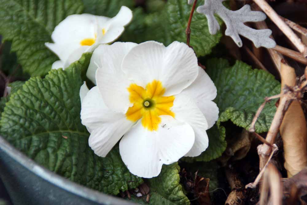 The geraniums that I brought home in early January are still getting used to their pots, but keep producing splashes of color. |
