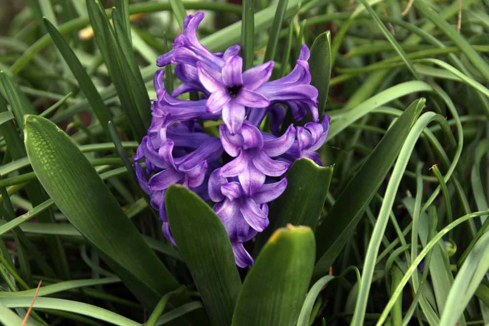The big hyacinths have come up in their pots in the back yard. Not yet ready in the darker, north-facing front yard. |