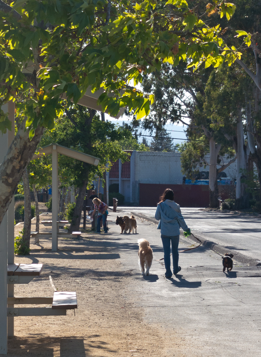 After that, we bipped across the freeway to Los Gatos Creek Park for a tiny stroll in the sunlight among the Canada Geese and their omnipresent poop. Not too long a walk because Tika was on a sedative, although I gave her only half a tablet this time 90 minutes before the vet.