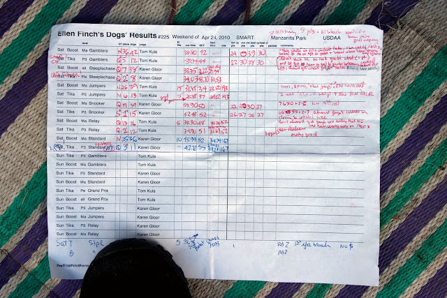 So, for Boost's weekend: Qed 5 out of 8--62%! She has NEVER Qed more than 35% in a USDAA weekend, EVER! *AND* four of them placing in the top 4 out of a large class, when she'd only ever had 2 placements in a weekend before.