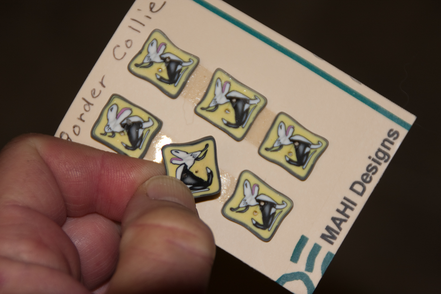 So now I have some beautiful art border collie buttons. Will have to think what clever thing I can do with them. They look like they have a good sit-stay, anyway.