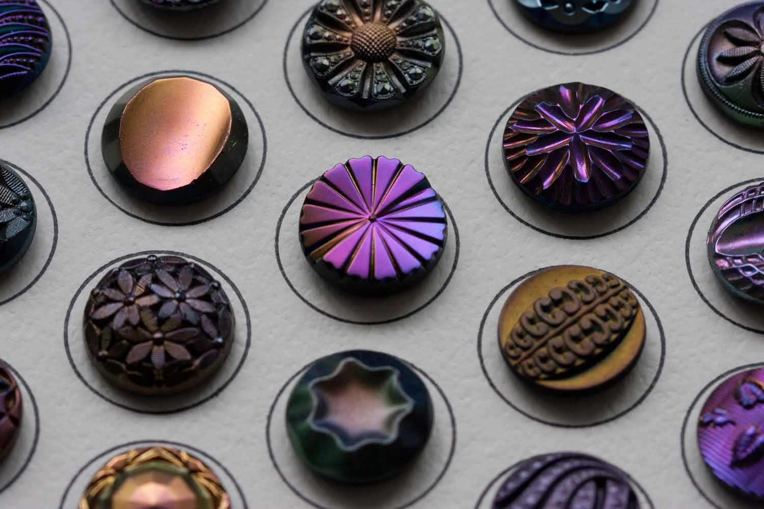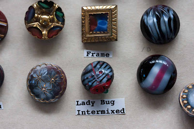 A couple of us begged for a viewing, and when she realized that we were serious, she invited us over wayyy back in August and gave us an hour's tour of a small percentage of her buttons. I tried taking shots with a handheld camera; didn't work out well. I've told her I want to come back and take more photos.