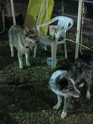 As a result, on the drive up to class last night, for the last mile I encountered clouds of fog drifting across and alongside the road, surrounding me in an odd, shifting tunnel of gray. When I alit from MUTT MVR, I admired the softly glowing agility field: