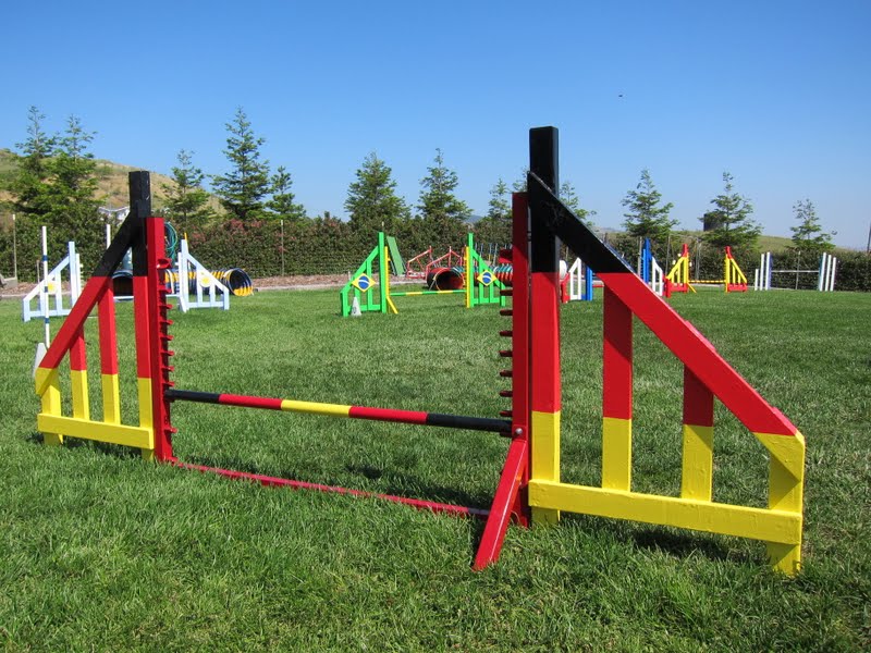 One of the things that I've always loved about dog agility is the joyful, pure, brilliant colors of the equipment against the green grass of an agility field.