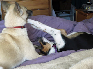 I have tried periodically to let Luke sleep on the king-sized bed with me and Chip, but every time I've lain down, he starts climbing all over me and biting at me and will not be deterred. I usually give it 5 to 10 minutes, depending on my patience and fatigue level, but he has always ended up back in his crate.