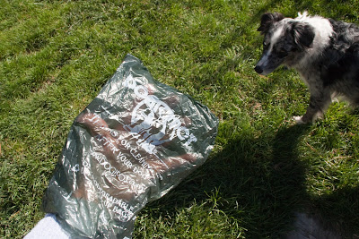 So I put her down, and she's looking at me cheerily, and Tika is buzzing around noisily at all the commotion, and I'm standing there, leaning on the counter, asking The Booster what on earth she's going on about, when of a sudden I think I hear something in the cabinet next to me. Just the tiniest of whispery sounds, and gone again. I managed to get the dogs into down-stays so that their jangling and toenails didn't interfere, and stood there and listened. After a minute, there it was again, a teeny whisper. Mouse in the wall? With all the rodents we've had around lately, it could be. And then came the distinct (but very quiet) sound of tiny toothers chewing cellophane.