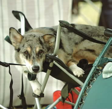 Drove uneventfully up to Santa Rosa (hah, they also didn't steal my FastTrak toll gizmo, I noted as I went across the bridge), unloaded everyone and set up the Cabana Crates and all. About an hour into the trial, someone came to tell me that Boost had ripped open the side of her crate and was lunging out at dogs as they came by.