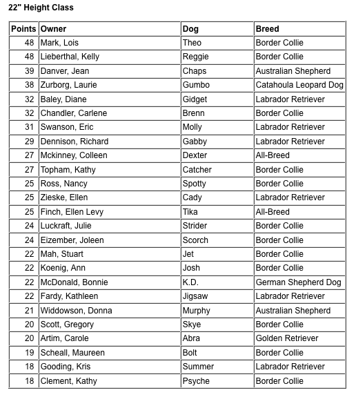 22" Height Class (from the USDAA Perf Top Ten Jumpers page)