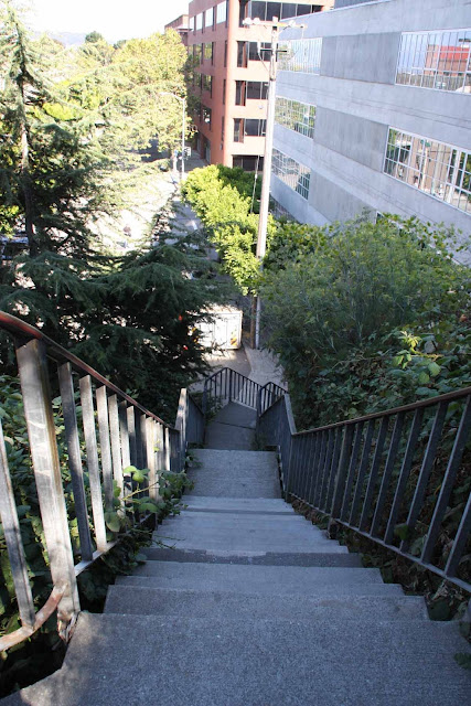 two sets of stairs have 378 and 397 steps. My friend and I walked up the first 100 steps and already got a bit of a view, but my legs weren't up to doing the whole thing, especially with mom and dad down in the car with nothing to do.