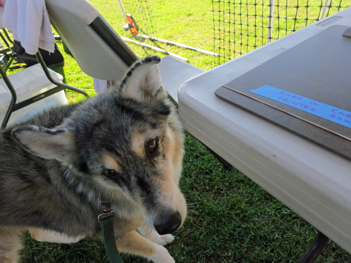 The next morning, before the agility competition began, he started scratching at his ear (he had long floppy long-haired ears) and shaking his head. He was prone to ear infections, so I always carried special goop from the vet.  I figured he'd gotten water in his ear while swimming and an infection was starting.  Applied goop per the normal schedule. We went to the vet when we got home--actually the next morning when they opened. Vet said, nope not an infection, but was able to pull a foxtail out of his ear fairly easily without anesthesia--he said that's because the goop had softened it so much that it couldn't stick in anything and he could just grab it with long tweezers(?) and glide it out, no anesthesia. Disaster averted.