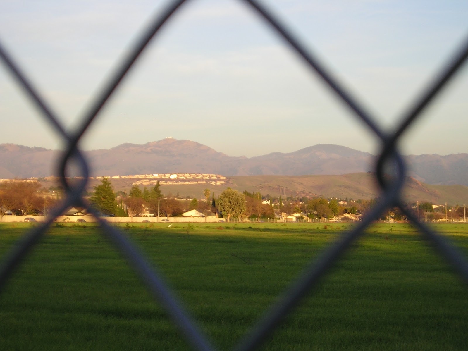 We started up the hill, and halfway I could see the Santa Cruz mountains making stunning layers of blue. Cheap camera makes it very grainy.