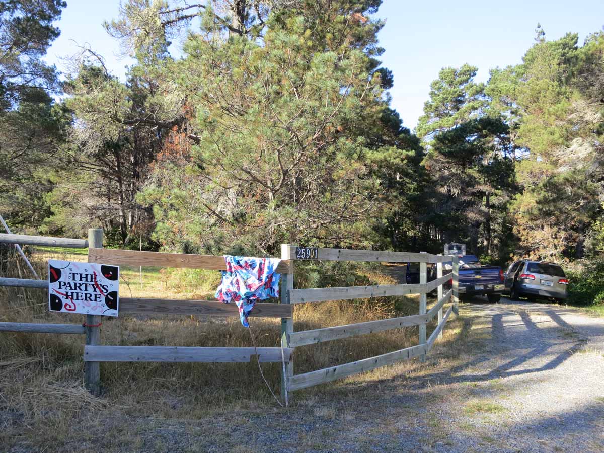 (Plus someone hung a Hawaiian shirt on the fence as well--with the familiar sign and familiar shirt, ya couldn't hardly miss the entrance.)