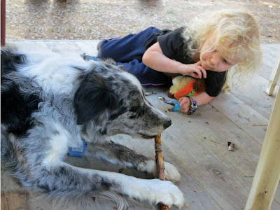 The huge difference for me was that, for the first time in those 27 years, the Merle Girls got to come along. What an experience for all concerned! Some of the small children couldn't get enough of throwing the frisbee or the ball for Boost, who was sometimes a little discombobulated at the distinctive styles of throwing and kicking utilized by two-to-eight-year-olds, but somehow survived the trauma.